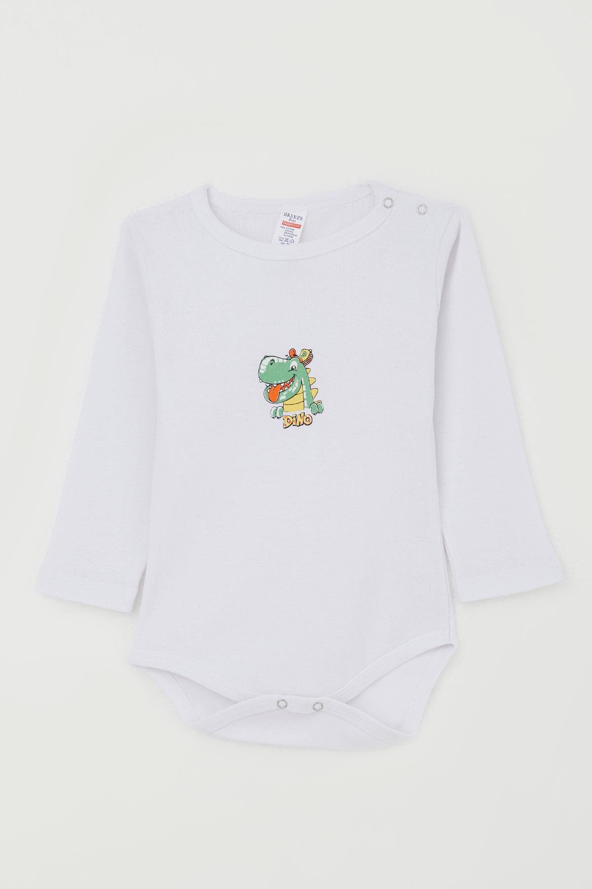 Erkek Bebek Çıtçıtlı Zıbın Body Mutlu Dinozor Baskılı Beyaz (9 Ay-3 Yaş) (E1027B.50-127)