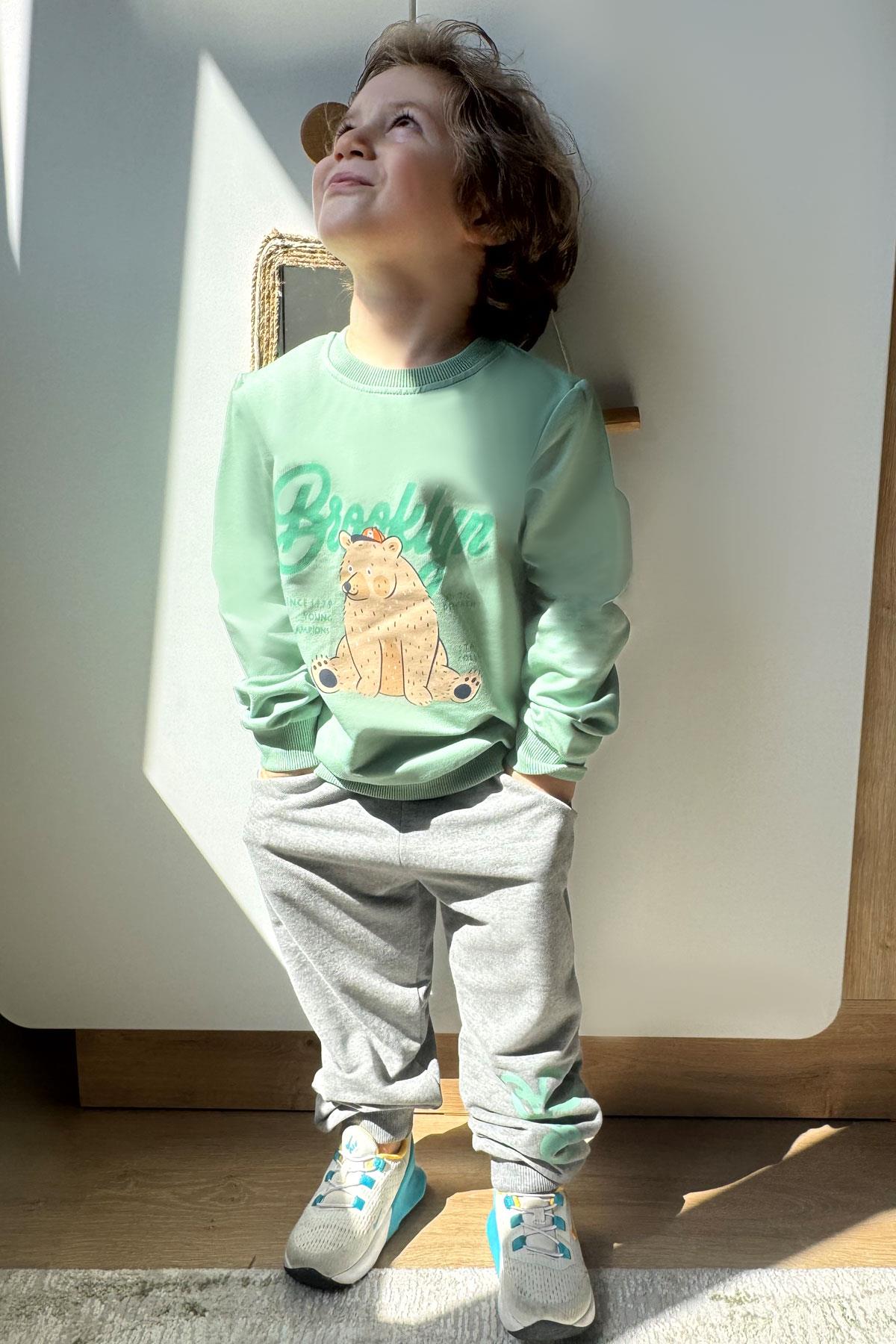 Erkek Çocuk Eşofman Takım Kolej Şampiyonu Sevimli Ayıcık Baskılı Mint Yeşili (2-4 Yaş) (20561-356)