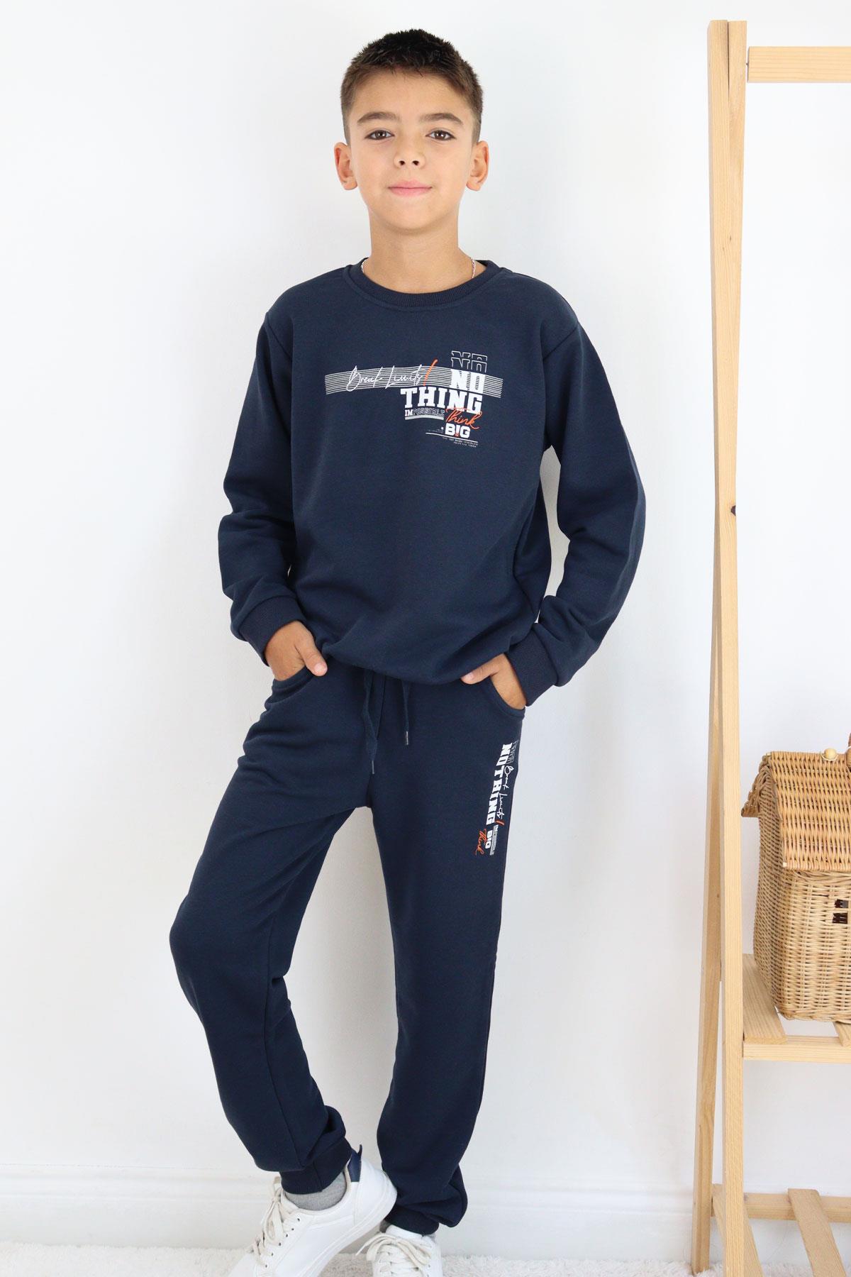 Erkek Çocuk Eşofman Takım Yazı Baskılı Bağcık Aksesuarlı Lacivert (8-9 Yaş) (21402-34)