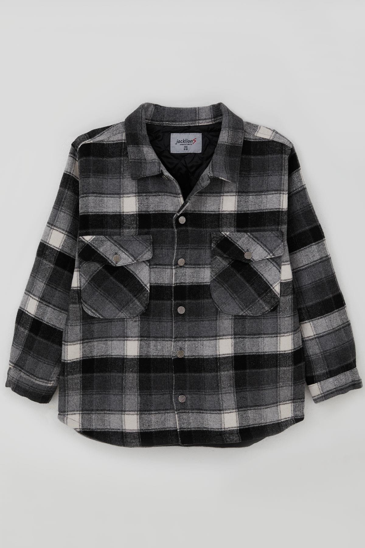 Jack Lions Erkek Çocuk Mont Ekose Desenli Düğmeli Cepli Gri (10-14 Yaş)