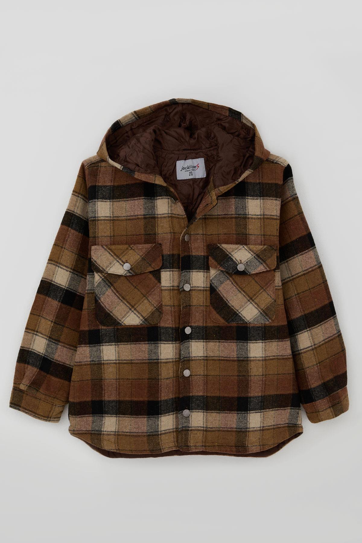 Jack Lions Erkek Çocuk Mont Ekose Desenli Kapüşonlu Düğmeli Karışık Renk (10-14 Yaş)
