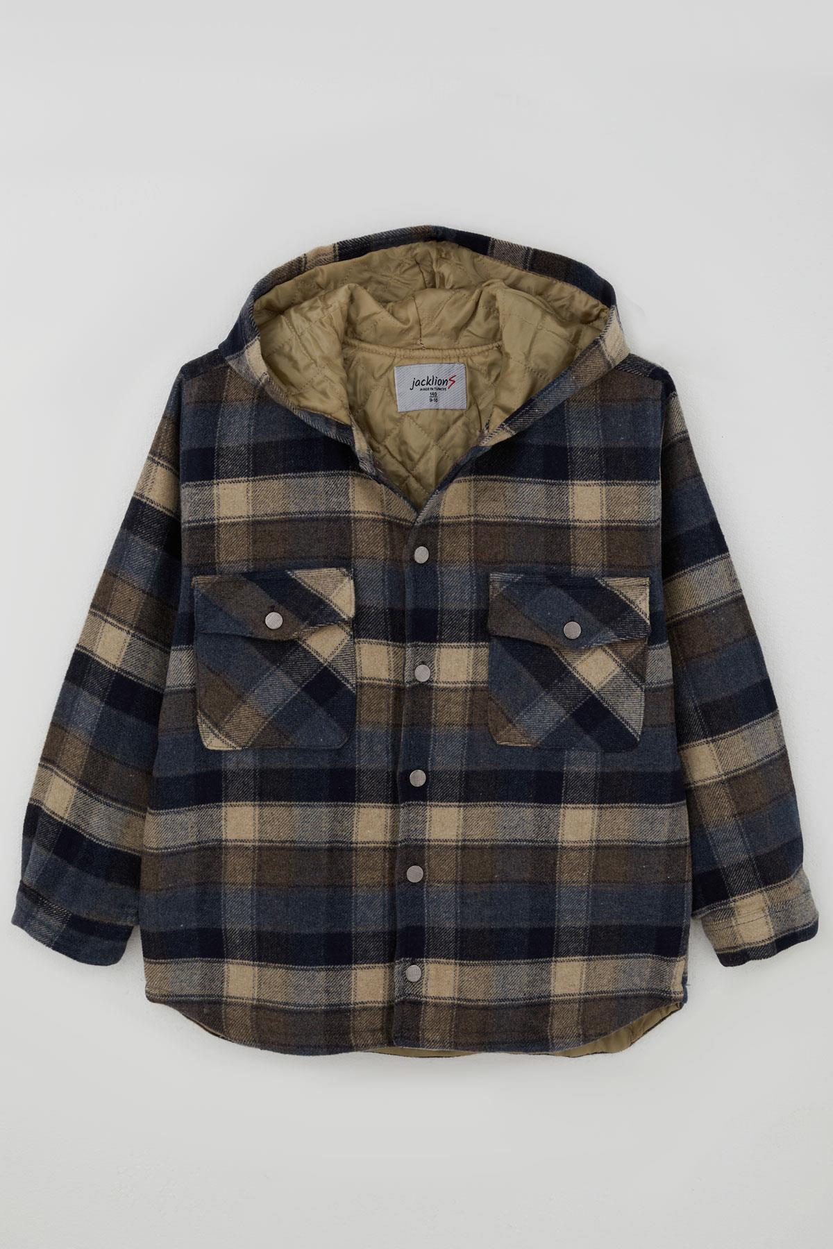 Jack Lions Erkek Çocuk Mont Ekose Desenli Kapüşonlu Düğmeli Karışık Renk (10-14 Yaş)