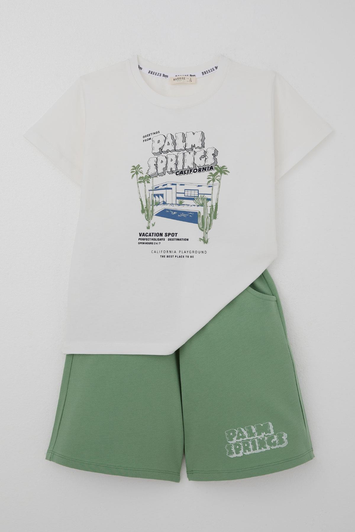 Breeze Erkek Çocuk Şortlu Takım Tatil Temalı Palmiye Ağacı Baskılı Beyaz (5-9 Yaş)