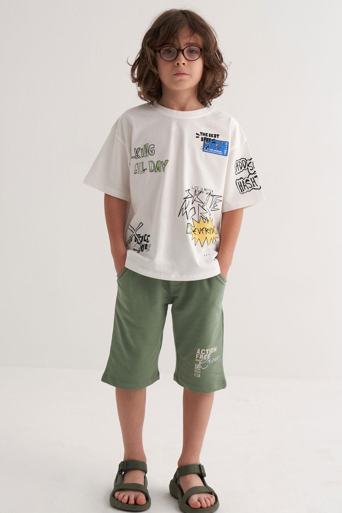 Breeze Erkek Çocuk Tişört Teknoloji Temalı Yazı Baskılı Ekru (7-12 Yaş)