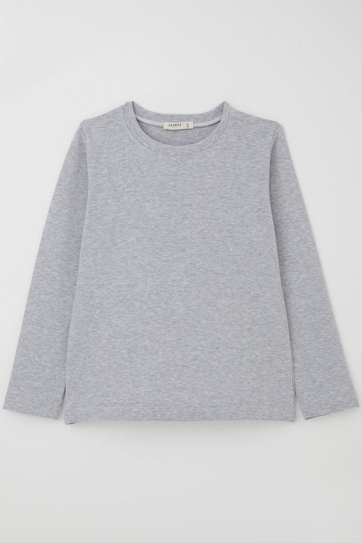 Breeze Erkek Çocuk Uzun Kollu Tişört Basic Açık Gri Melanj (9-12 Yaş)