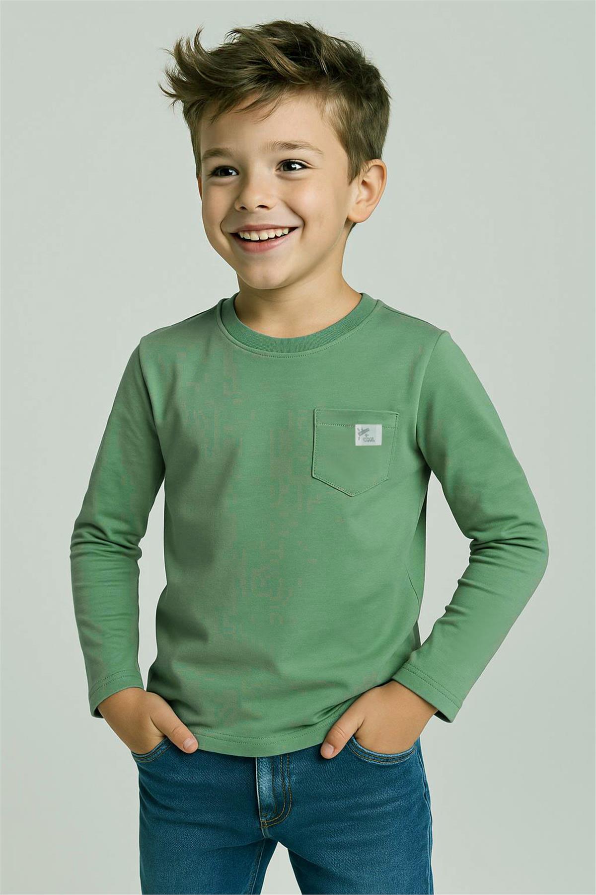 Erkek Çocuk Uzun Kollu Tişört Cool Yazı Armalı Cepli Mint Yeşili (4-7 Yaş) (20813-356)