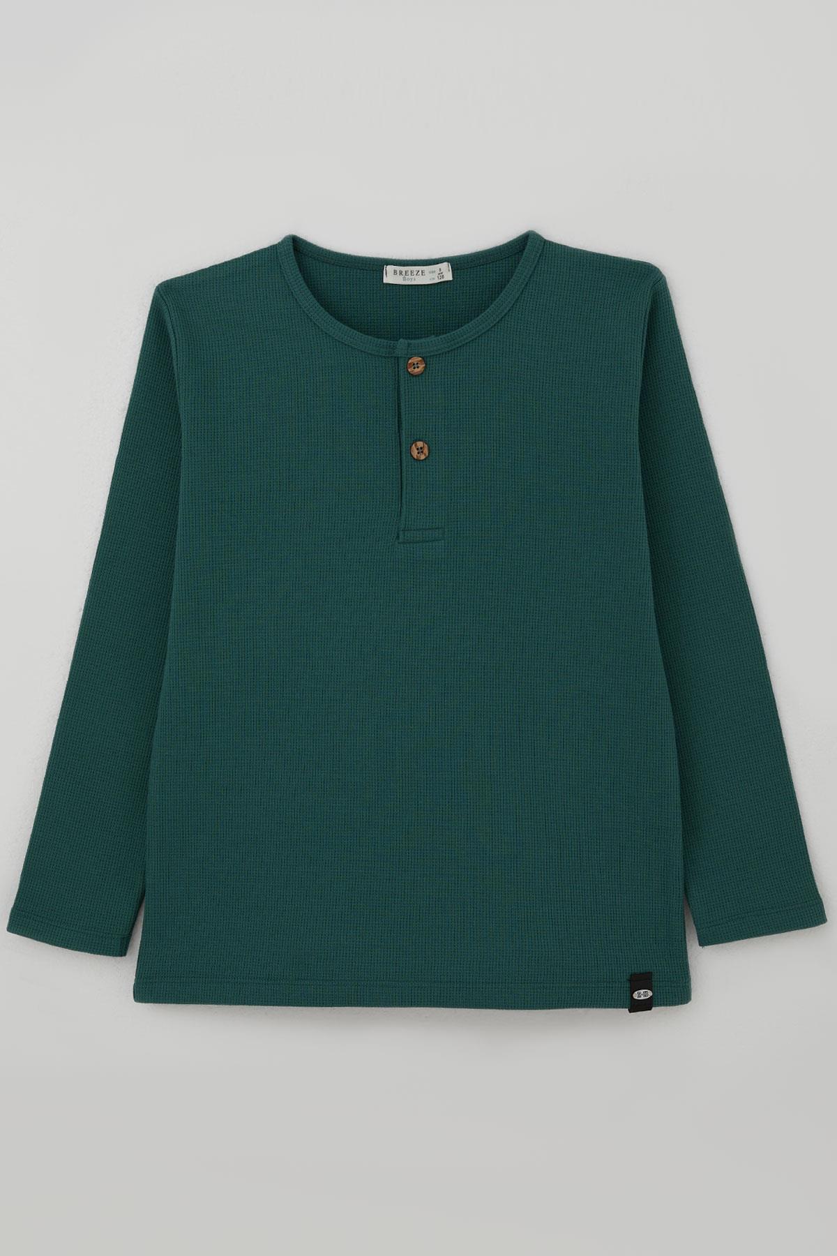Breeze Erkek Çocuk Uzun Kollu Tişört Düğme Detaylı Petrol Yeşili (4-8 Yaş)