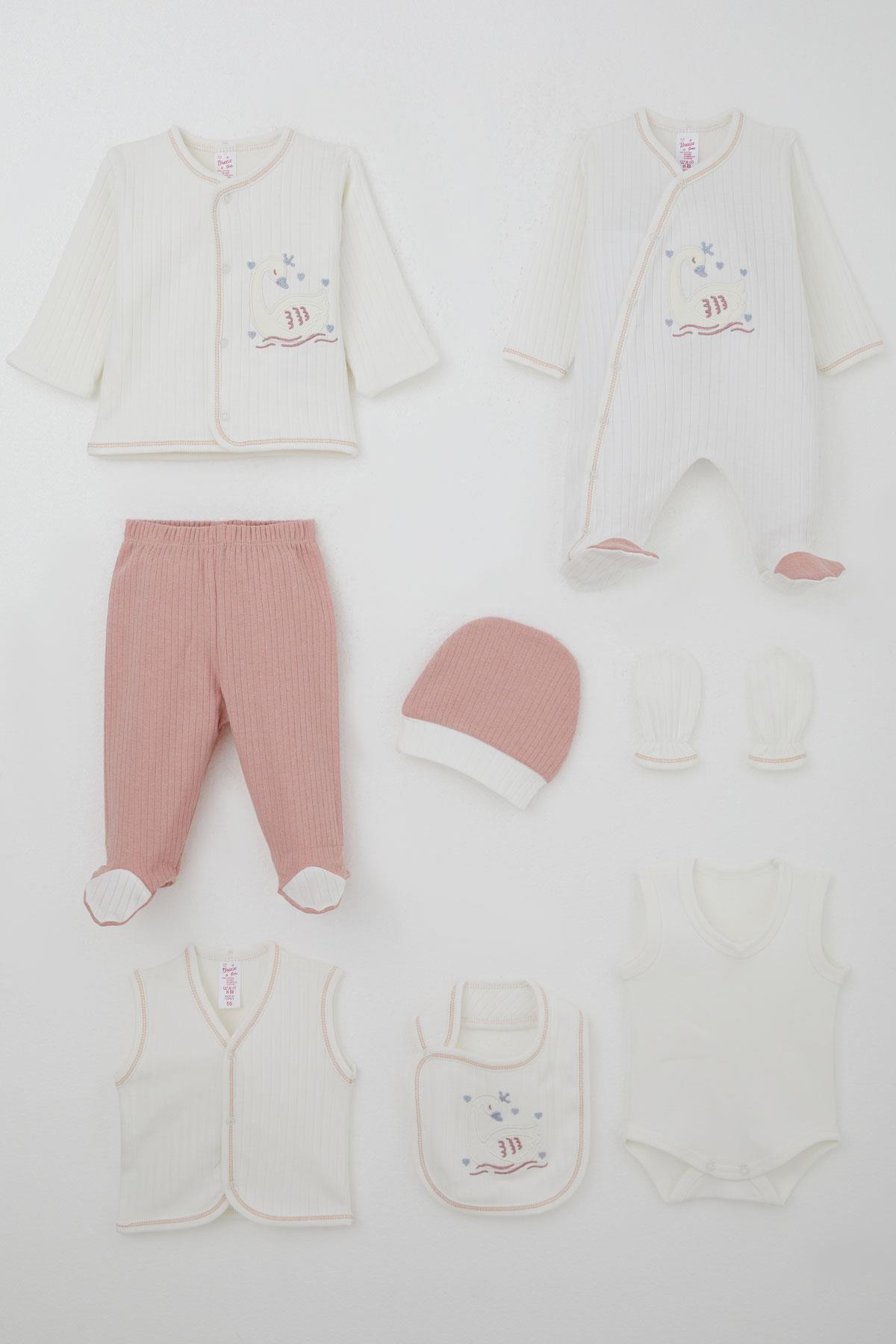 Kız Bebek Hastane Çıkışı 8 li Sevimli Kraliçe Kuğu Nakışlı Ekru (0-3 Ay) (KBTS658.4-43)