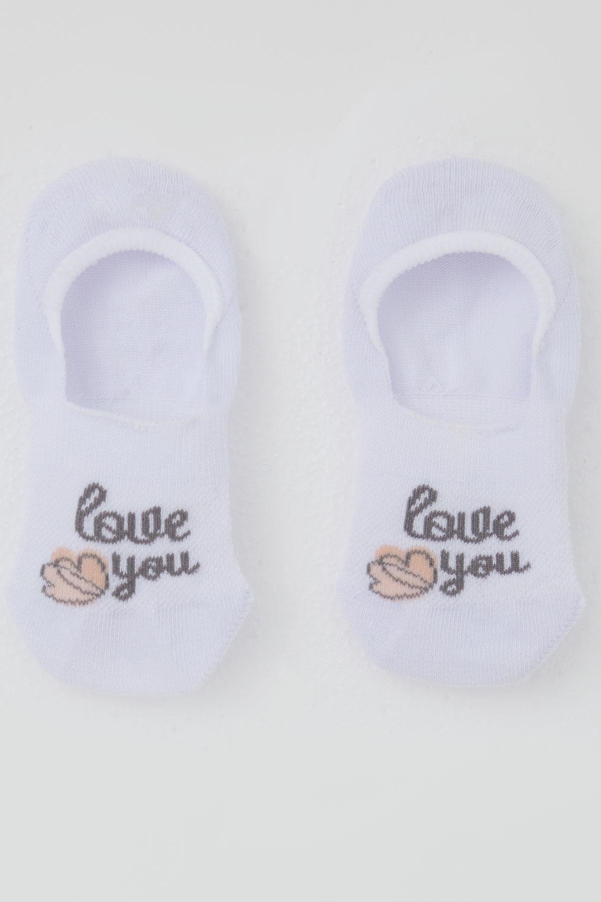 Kız Çocuk Babet Çorap Sevgi Temalı Kalp Baskılı Beyaz (5-14 Yaş) (ÇK820005-127)
