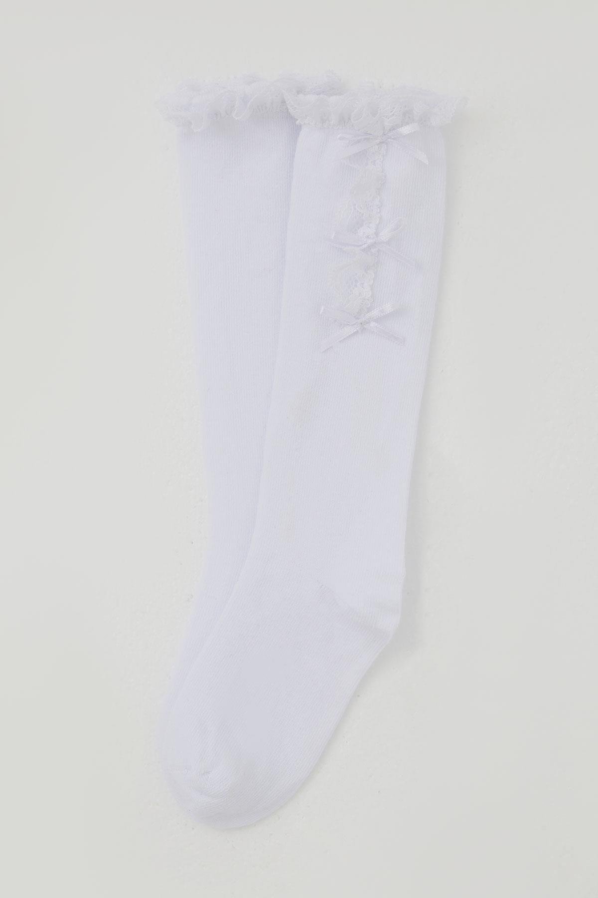 Katamino Kız Çocuk Golf Çorap Fiyonk Aksesuarlı Dantelli Beyaz (1-8 Yaş)