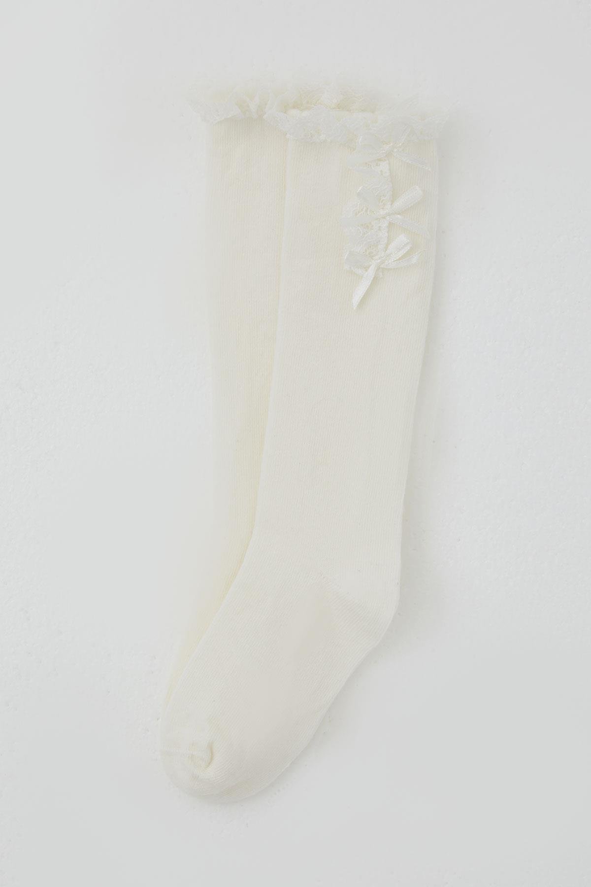 Katamino Kız Çocuk Golf Çorap Fiyonk Aksesuarlı Dantelli Krem (1-8 Yaş)