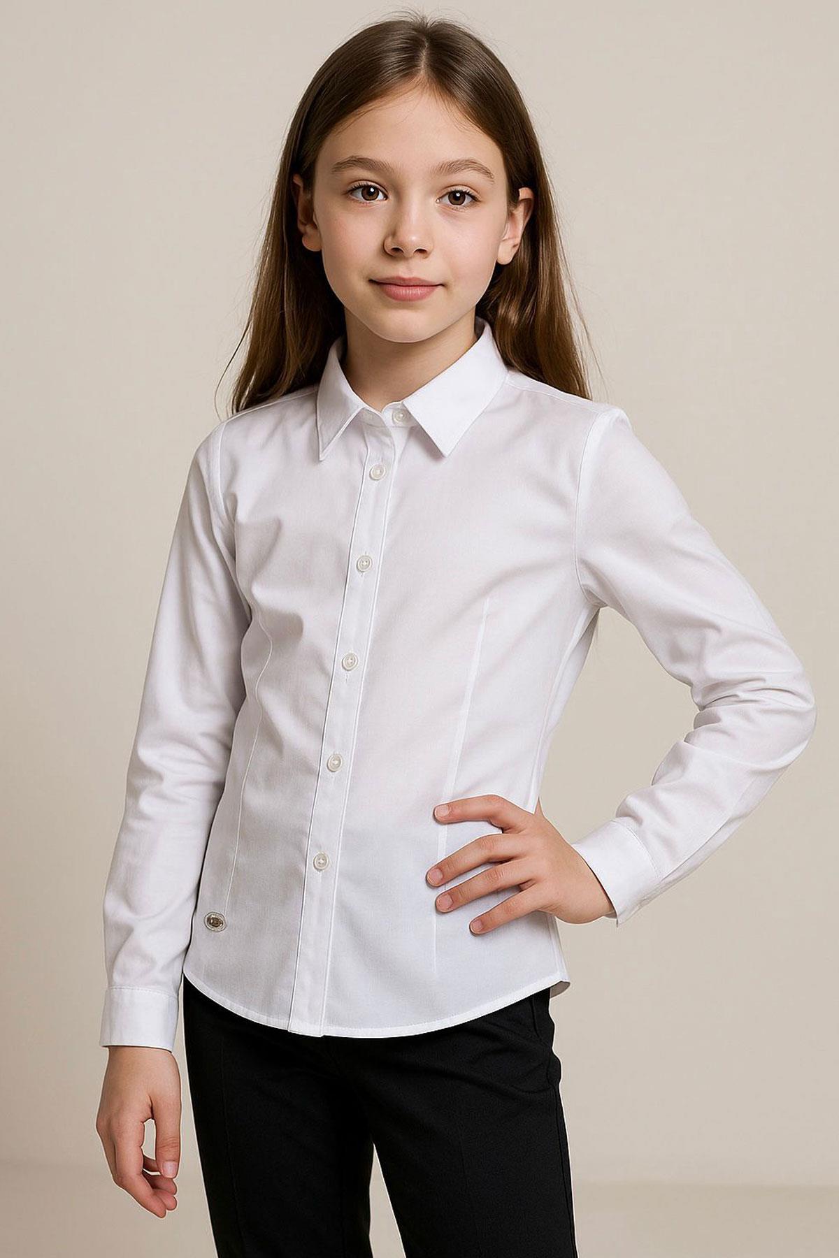 Kız Çocuk Gömlek Belden Oturtma Düğmeli Arma Detaylı Beyaz (8-12 Yaş) (G477-127)