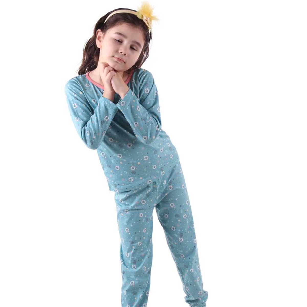 Kız Çocuk Kedi Desenli Pijama Takımı Breeze Turkuaz
