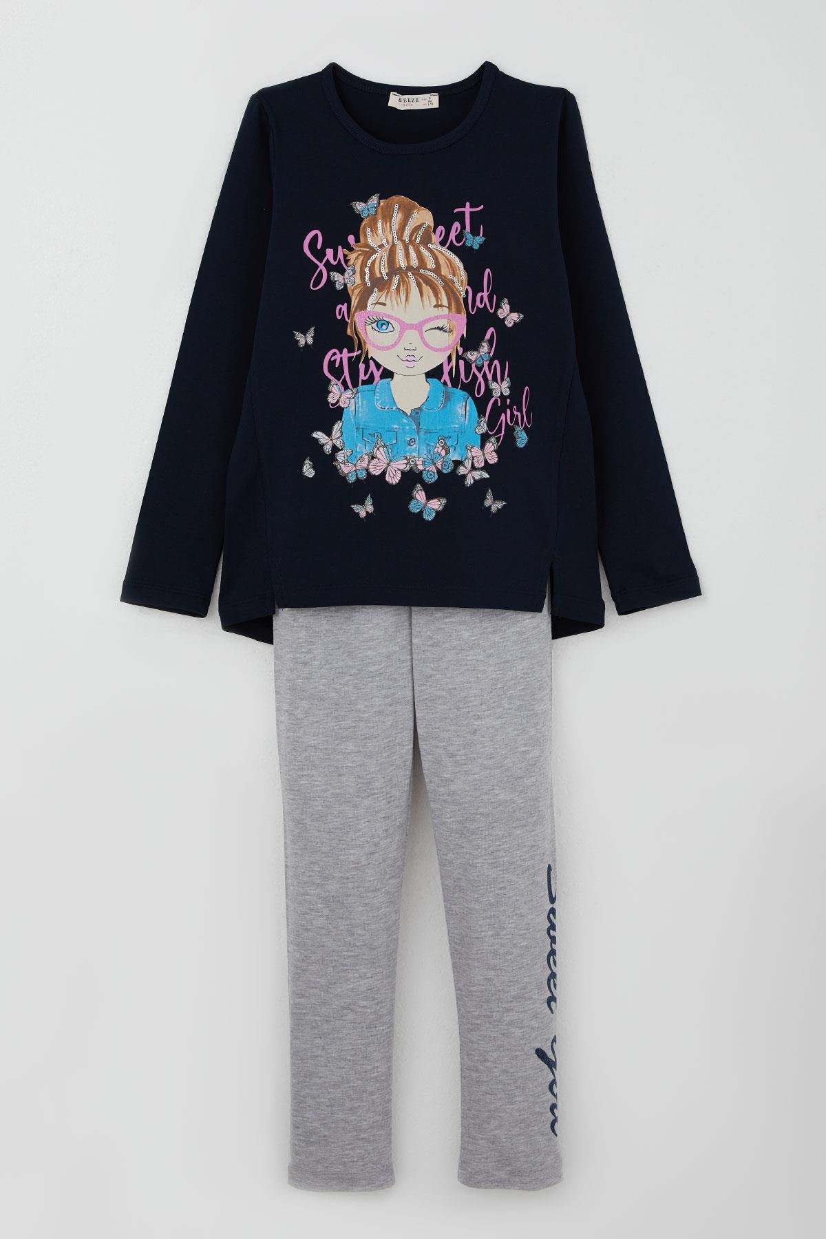 Breeze Kız Çocuk Tatylı Takım Kelebekli Kız Baskılı Lacivert (5-10 Yaş)