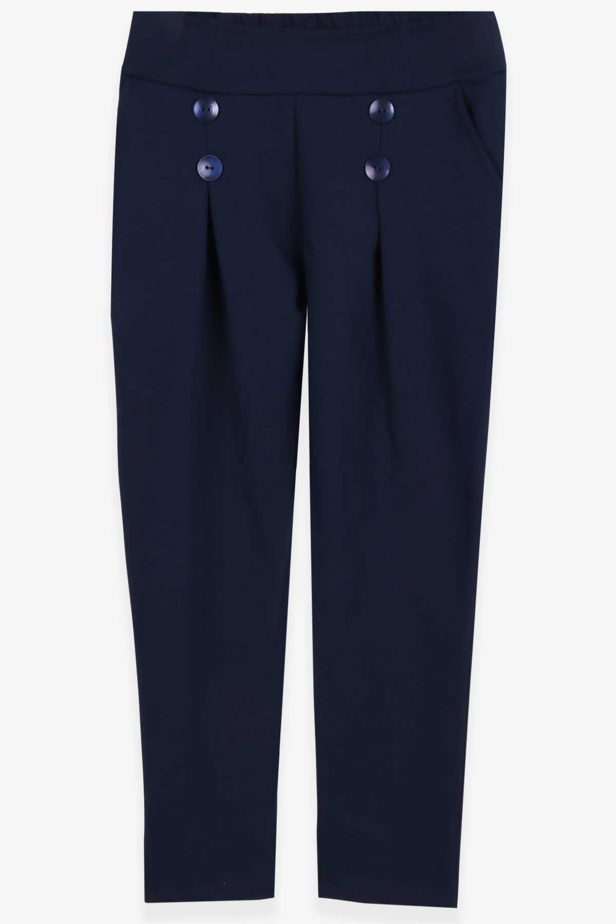 Kız Çocuk Tayt Pantolon Pileli Beli Lastikli Lacivert (9-14 Yaş) (17286-34)