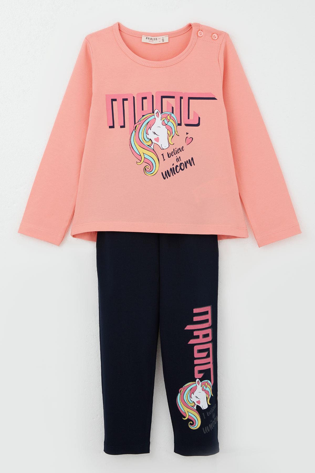 Breeze Kız Çocuk Taytlı Takım Unicorn Baskılı Somon (1.5-5 Yaş)