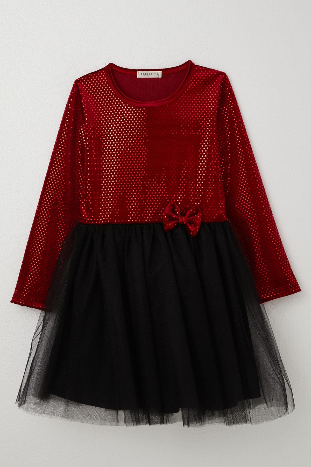 Breeze Kız Çocuk Uzun Kollu Elbise Kadife Pullu Kırmızı (5-10 Yaş)