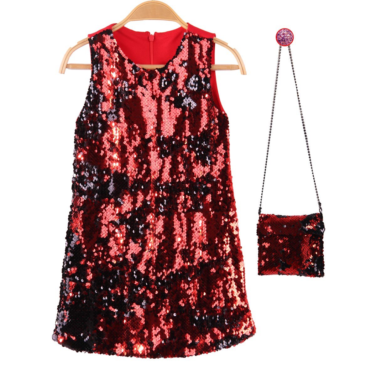 Kız Çocuk Pullu Elbise Kırmızı-Siyah (5-6 Yaş)