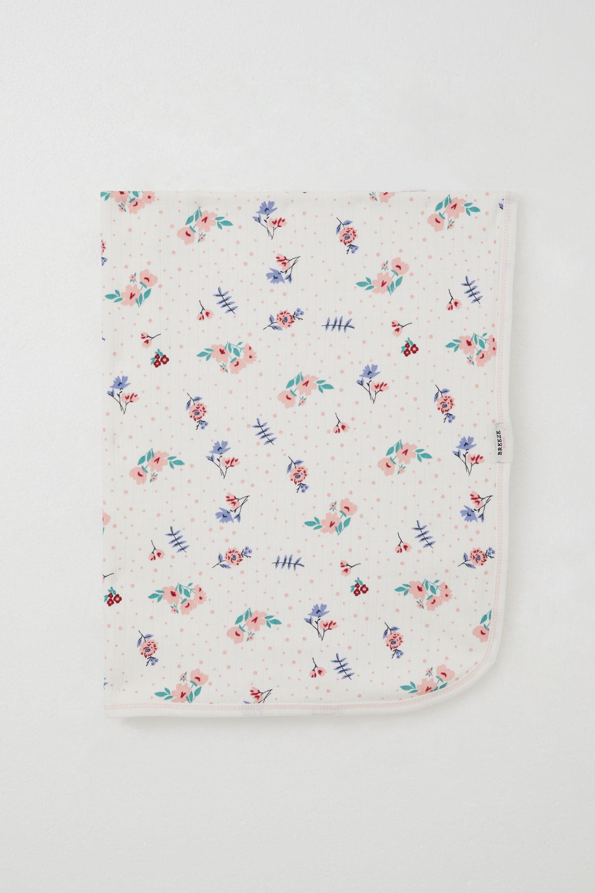Breeze  Yenidoğan Bebek Battaniyesi Çiçek Desenli Puantiye Detaylı Ekru (81 x 88 cm)